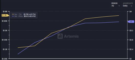 수이 생태계와 관련 토큰의 급성장세에 SUI가 조만간 전고점을 돌파할 수 있다는 전망도 나온다. SUI는 올해 1월 기록한 최고가 5.35달러에 비해 30% 가량 낮은 수준이다. 가상자산 애널리스트 카일둡스는 엑스를 통해 “수이는 이제 ‘스텔스 모드’를 벗어났다”며 “이번 상승세는 단순한 투자 과열이 아니라 진짜 모멘텀이며 점점 가속화 되고 있다”고 진단했다.