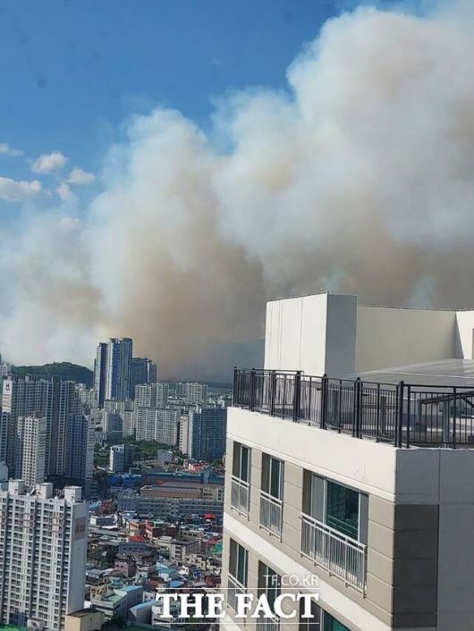 [더팩트┃대구=박병선 기자] 28일 오후 2시 1분쯤 대구시 북구 노곡동 산 14번지 함지산에서 발생한 산불이 확산되면서 주민 대피령이 발령됐고 경부고속도로 북대구TG가 폐쇄됐다.