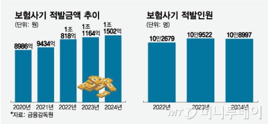 보험사기 적발금액 추이, 보험사기 적발인원/그래픽=임종철 |