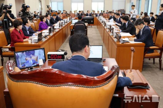 [서울=뉴시스] 권창회 기자 = 28일 서울 여의도 국회에서 열린 행정안전위원회 전체회의에서 신정훈 행안위원장이 의사봉을 두드리고 있다. 2025.04.28. kch0523@newsis.com |