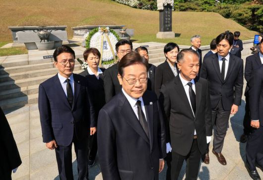 이 후보는 민주당 대선 후보로 선출된 뒤 첫 공식 일정으로 국립서울현충원을 찾아 이승만·박정희·김영삼·김대중 전 대통령 묘역을 참배했습니다.