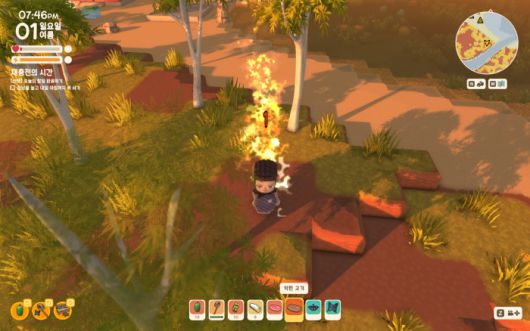 먹거리 수급도 까다롭다. 요리하지 않은 열매나 생고기만으로는 기력이 쉽게 바닥난다. 기력이 떨어지면 광질도, 벌목도, 낚시도 제대로 못 한다. 일단 고기를 구워먹을 수 있을 때까지 버텨야 한다.