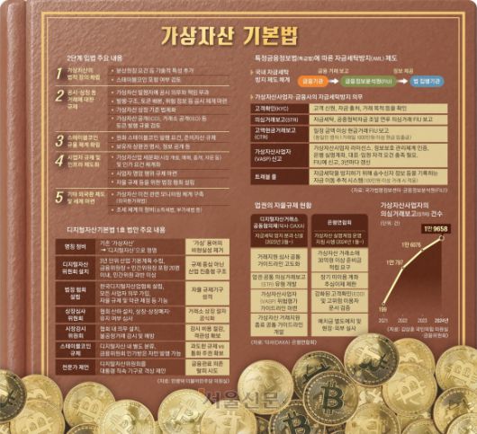 우리나라 가상자산(암호화폐) 기본법의 진도는 전체 2단계 중 1단계까지 나아갔다. 이용자 보호와 자금 세탁 방지에 초점을 맞춘 ‘가상자산 이용자 보호법’으로 규제에 방점을 둔 ‘1단계 입법’이다. 이용자 예치금 보호, 불공정거래행위 조사·처벌 근거 마련, 금융당국의 감독·검사·제재 권한 규정 등을 담았다. 2023년 7월 제정해 지난해부터 시행 중이다. 2단계 입법은 올 하반기부터 이뤄진다. ‘가상자산업 제도화’가 골자다. 가상자산의 법적 성격을 명확히 하고 상장과 공시, 회계 등 제도를 구체화한다. 현재 거래소 중심에서 매매, 중개, 자문 등으로 가상자산업을 세분화하고 인가 요건도 체계화할 방침이다. 미국처럼 일단 민간 자율에 맡기고 영역별(은행·증권·상품)로 관리하는 방식이 아닌 가상자산을 포괄적으로 관리하는 단일 체계를 만든다는 목표다. 유럽연합(EU)의 가상자산 단독 법안인 미카(MiCA)와 같은 ‘공공 규율 중심형 모델’에 가깝다.