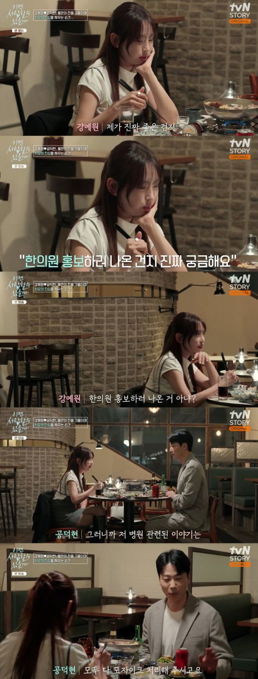강예원은 궁금한 게 있다며 "제가 진짜 좋은 건지, 한의원 홍보하러 나온 건지 진짜 궁금하다"며 "'한의원 홍보하러 나온 거 아니야? 유튜버 아니야?' 이런 식으로 계속 생각했다"고 돌직구 질문을 던졌다.