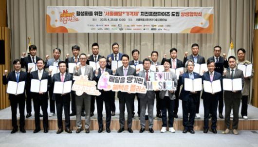 지난 25일 서울시와 치킨 프랜차이즈 18곳이 땡겨요 활성화를 위한 상생협약을 맺었다. [사진=서울시] |