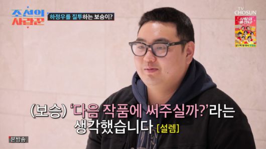 손보승은 "나도 하정우 선배님을 좋아했는데 아내가 너무 좋아해서 질투를 하고 있다. 난 원래 황보라 선배님 팬이었다"라고 고백해 웃음을 자아냈다.