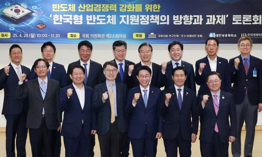 대한상공회의소는 의원 연구단체인 국가 미래비전 포럼, 한국경제학회와 함께 28일 국회 의원회관에서 ‘한국형 반도체 지원정책의 방향과 과제 토론회’를 열었다.