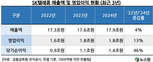 최근의 악재와는 별개로 SK텔레콤은 안정적인 실적과 높은 배당성향으로 주주들에게 인기가 많았다. SK텔레콤의 2024년 연결기준 매출액은 17조9000억원으로 2년 전인 2022년 매출액 17조3000억원과 비교하면 증가율은 4%에 불과하다.