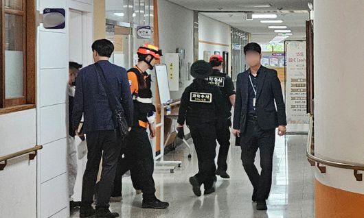 28일 오전 8시 36분쯤 충북 청주시 흥덕구 오송읍의 한 고등학교에서 한 학생이 흉기를 휘두른 사건과 관련해 경찰 등이 현장 감식을 벌이고 있다. 뉴스1 |