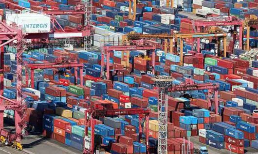 부산 남구 감만부두 야적장에 컨테이너가 가득 쌓여 있다. 뉴시스 |
