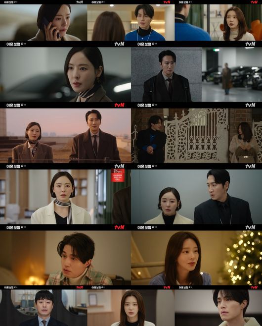 지난 28일 방송된 tvN 월화드라마 ‘이혼보험’(연출 이원석·최보경, 극본 이태윤) 9화에서 전나래(이다희 분)의 솔직한 고백으로 강한들(이주빈 분)은 자료 유출 누명을 벗었고 TF팀은 해체 위기를 넘겼다. 특히 노기준(이동욱 분), 강한들, 안전만(이광수 분), 전나래는 위기 속에서 진심을 확인하며 더욱 가까워졌다.