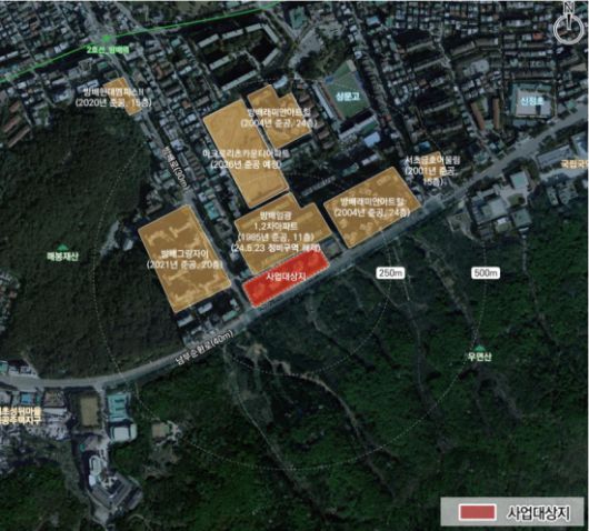 이번 정비계획 결정을 통해 용적률 300%·최고 29층 이하로 공동주택 379가구(공공임대주택 47가구) 및 부대복리시설을 재건축하게 된다. 대상지는 서울지하철 2호선 방배역 인근에 있다. 우면산, 매봉재산, 방배근린공원도 주변에 위치하고 있다.