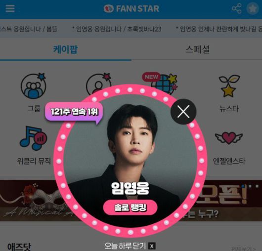 임영웅의 1위 소식과 함께 투표에 참여한 팬들이 '팬앤스타' 공식 문자메시지함으로 축하 인사를 보냈다. 닉네임 '조랭떡'은 "임영웅 사랑합니다"라고 전했다.