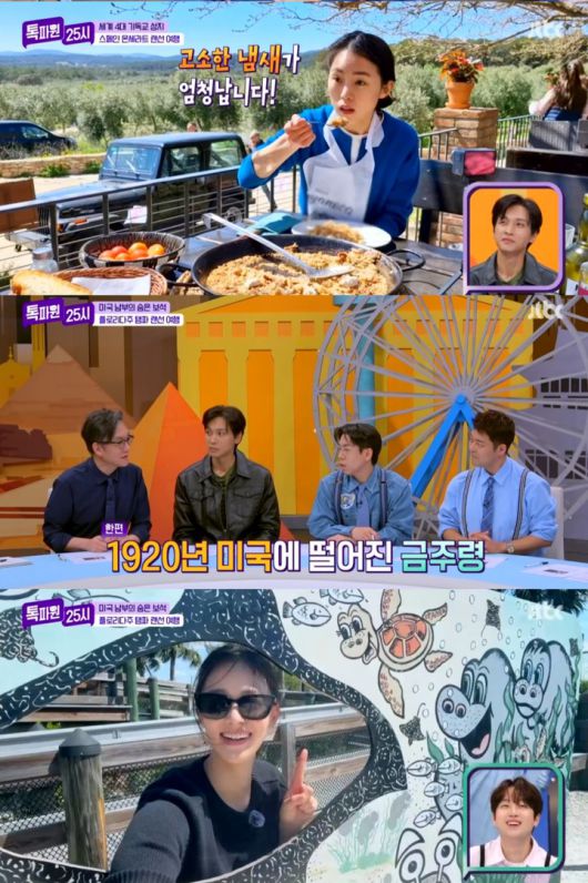 지난 28일 방송된 JTBC 예능 '톡파원 25시'에서는 배우 구본승, 스토리텔러 썬킴과 함께 스페인 몬세라트, 중국 선양, 미국 플로리다 탬파, 프랑스 파리까지 다채로운 여행기가 그려졌다.