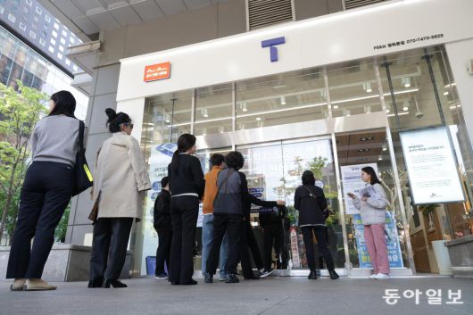 SK텔레콤(SKT) 유심 해킹 사고 여파로 유심 무상 교체가 진행 중인 가운데 29일 오전 서울 종로구의 한 T월드 매장에서 이용자들이 유심 무상 교체를 받기 위해 줄 서 있다. SKT에 따르면 전국 T월드 매장 2600여 곳에서 전날부터 유심 무상 교체 서비스를 진행했지만, 유심 교체를 완료한 가입자는 전날 오후 6시 기준 23만 명이다. 이는 SKT 전체 고객 2300만 명의 1% 수준이다. 박형기 기자 oneshot@donga.com |