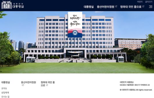 앞서 윤 전 대통령 파면 이후 서비스가 중단됐던 대통령실 홈페이지는 개편 작업을 거쳐 28일 다시 복구된 것으로 파악됐다. 기존에 있던 윤 전 대통령 사진은 새 웹사이트에서 대통령실 전경 사진으로 대체됐다. 홈페이지 주요 메뉴 역시 개편됐다. 윤 전 대통령의 재임 시절 발언, 국정과제 설명글, 보도자료 등은 모두 사라졌다. 지금은 '대통령실 조직도' '상징체계' '오시는 길' 등 메뉴만 남았다.