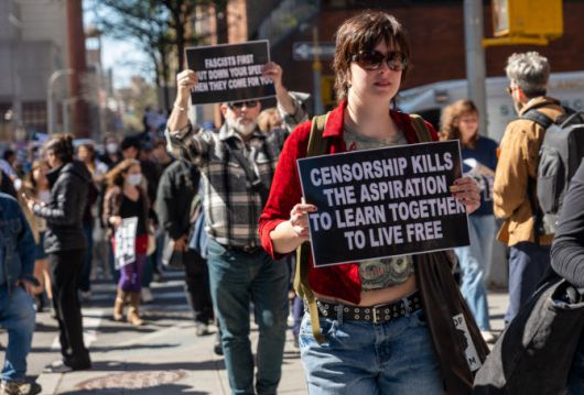 지난 17일(현지시간) 미국 뉴욕에서 대학생들과 시민들이 대학과 교육을 지지하는 집회 행진을 벌이고 있다. (사진=AFP) |