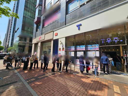 SK텔레콤이 유심 교체를 시작한 지 이틀째인 29일, 서울 서초구의 한 SK텔레콤 대리점 앞에 유심을 교체하려는 가입자들이 줄을 서고 있다. /뉴스1 |