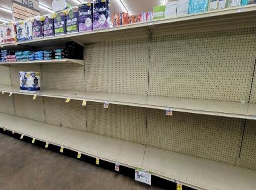 미국 도널드 트럼프 행정부의 관세 정책 여파로 미국 소비자들이 다음 달이면 소매점의 텅 빈 진열대를 보게 될 수 있다는 월가의 경고가 나왔다. 사진은 2024년 항만 노조 대규모 파업 당시 텅 비어 있는 미국 대형마트의 휴지 진열대. 엑스 |