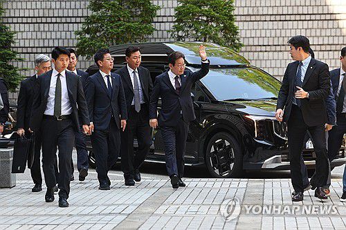 경호받으며 법정 향하는 이재명 후보 |