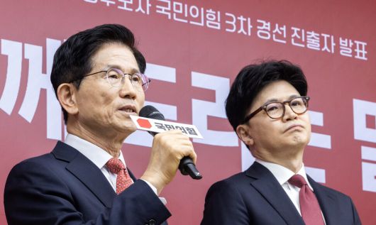 캠프 총괄선대본부장인 장동혁 의원은 “당심에서 훨씬 앞섰다고 본다. 김 후보가 탄핵 반대에 선명성을 유지하면서 한 권한대행과의 단일화에 적극적으로 나선 게 주효한 것”이라고 말했다. 김 후보 쪽은 결선에서도 이런 기조를 유지할 예정이다. 유상범·김대식 의원 등 홍 후보 캠프 의원들은 이날 김 후보 지지를 선언했는데, 이 역시 조직력이 중요한 당심에 영향을 줄 것으로 보인다.