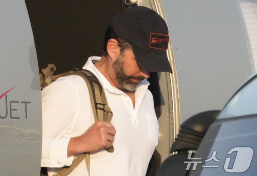 도널드 트럼프 미국 대통령의 장남 트럼프 주니어가 29일 서울 강서구 김포공항에 도착, 전용기에서 내리고 있다. 2025.4.29/뉴스1 ⓒ News1 공항사진기자단 |