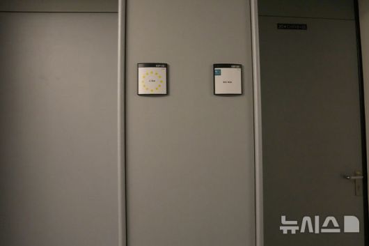 [브뤼셀=AP/뉴시스]유럽의회에서 저명한 독일 국회의원을 위해 일했던 한 남성 보좌관이 4년 넘게 중국을 위한 스파이 활동을 한 혐의로 기소됐다고 독일 수사당국이 29일(현지 시간) 발표했다. 사진은 지난해 5월 7일 독일대안당(AfD) 소속 막시밀리안 크라 유럽의회 의원(오른쪽)과 그를 위해 일했던 독일 국적인 지안 궈의 사무실 앞에 이름을 적은 플래카드가 나란히 걸려있는 모습. 2025.04.30. |