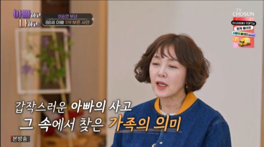 29일 방영된 TV조선 '아빠하고 나하고' 50회에서는 이승연 아버지가 갑자기 119구급차에 실려 가게 된 이야기가 전해졌다.