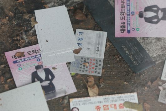 서울 종로구 한 폐업한 식당에 철거 업체 명함이 놓인 모습. 연합뉴스 |