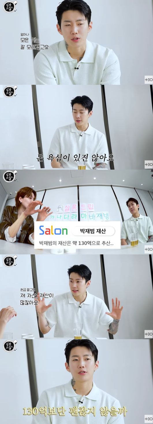 '박재범 재산'을 검색해본 적이 있냐는 질문에 그는 "해본 적 있다. 저도 이제 다른 분들 자주 한다"며 솔직하게 고백했고, 장도연이 "재산이 130억 된다는 글이 있다"고 언급하자 박재범은 "모르겠다. 현금 말고도 제 자산, 재산이 많다. 어떤 숫자로는 모르겠는데 그거보다는 더 있다"고 말해 놀라움을 자아냈다.