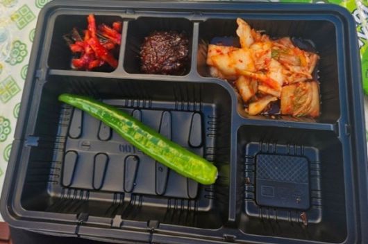 충북 충주에서 열린 19회 충북장애인도민체육대회에서 논란이 된 도시락. 뉴스1 |