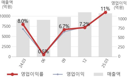 [서울=뉴스핌] 로보뉴스 = 아모레퍼시픽의 영업이익률이 3분기째 상승중이다. 24년 06월 0.5%였던 영업이익률이 24년 09월 6.7%로 상승한 이후 꾸준히 상승하여 이번에 11%를 기록하였다.