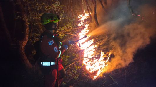 잔불을 정리하는 과정에서 함지산 산불 영향구역 내 5곳에서 불씨가 되살아난 것으로 파악됐다.