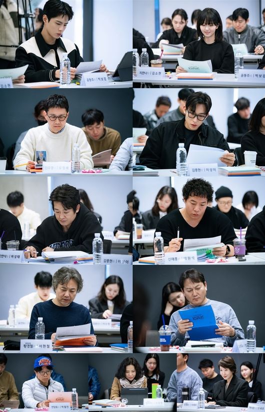 지난해 3월, 상암동 JTBC 사옥에서 진행된 JTBC 새 토일드라마 ‘굿보이’(극본 이대일, 연출 심나연, 제작 SLL, 스튜디오앤뉴, 드라마하우스스튜디오)의 대본 연습 현장에는 심나연 감독, 이대일 작가를 비롯해 박보검, 김소현, 오정세, 이상이, 허성태, 태원석, 서현철, 정만식, 박철민, 서정연, 서재희 등 믿고 보는 배우들이 총출동했다. 첫 연습만으로도 각자의 캐릭터에 완벽히 몰입한 이들은 유쾌한 웃음과 날 선 대립, 스프라이트 샤워의 짜릿함을 넘나들며 ‘굿보이’만의 박진감 넘치는 세계관을 구축해나갔다.
