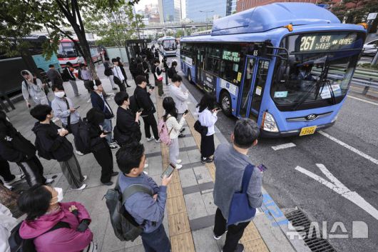 마포역 버스정류장에서는 주요 노선에 '서울시 지시에 따라 안전운행합니다'라는 팻말이 운전석에 부착돼 있었고, 버스마다 탑승 대기 인원이 30명 안팎에 달했다. "늦진 않았지만 사람 많고 붐빈다"는 반응이 이어졌다.