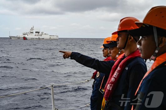 중국 해경선이 26일 (현지시간) 영유권 분쟁 지역인 남중국해 사비나 숄의 필리핀 해경선서 모습이 보이고 있다. 2024.08.27 ⓒ AFP=뉴스1 ⓒ News1 우동명 기자 |