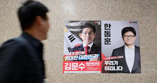 국민의힘 대선 경선 결선 대진표가 확정된 가운데 30일 서울 여의도 국회에 후보자 포스터가 붙어 있다. 국민의힘이 지난 29일 제21대 대통령선거 후보자 선출을 위한 결선에 김문수·한동훈 후보(가나다순)가 진출했다고 발표했다. 이상섭 기자 |