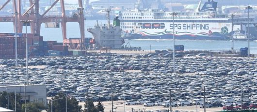 지난 29일 경기 평택항 자동차 전용부두에 선적을 기다리는 수출용 차량이 세워져 있다. 뉴시스 |