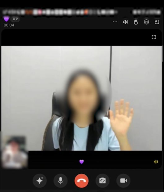 '로맨스 스캠' 범죄단체가 피해자와 딥페이크로 만든 인물 영상으로 통화를 하는 모습. 울산경찰청 제공 |