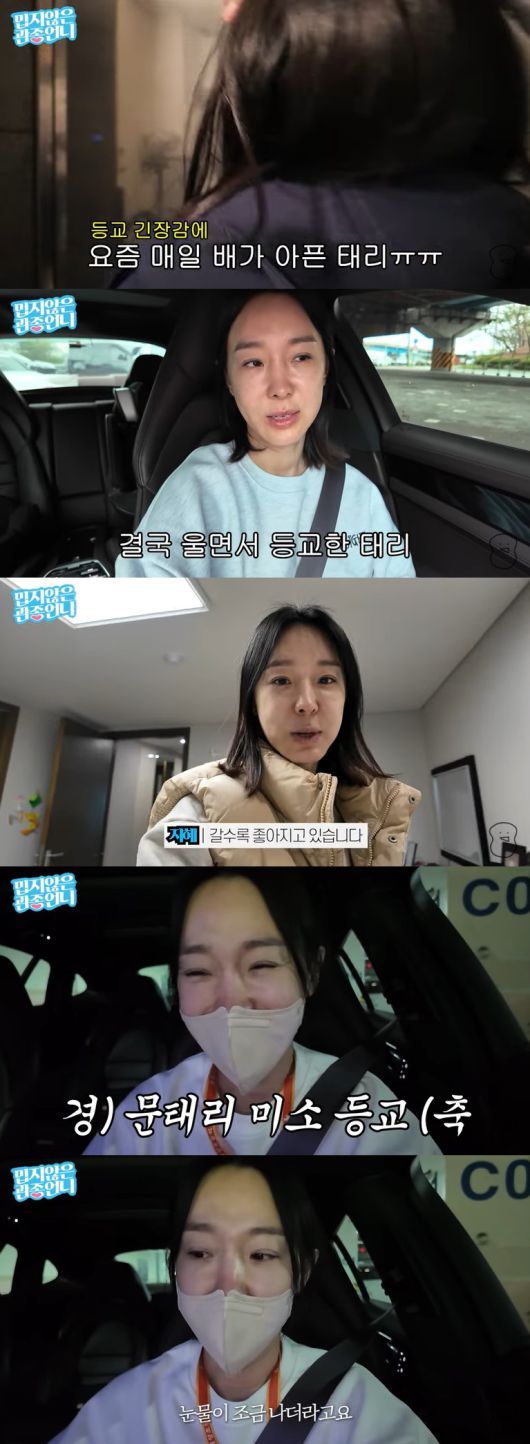 어느 월요일, 등교 긴장감으로 아픈 배에 결국 집을 나서면서부터 눈물을 보인 태리에 이지혜는 "긴장돼서 그런 거다. 엄마가 뭐라고 그랬냐. 너무 잘 하려고 하지 마라고 그랬지. 편안하게, 마음을 편안하게 먹어"라며 딸을 위로했다.