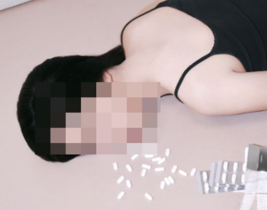비타민 제품을 홍보하는 한 사진에는 입가 근처로 흩어진 알약 옆 모델이 미동 없는 자세로 엎드려 누운 모습이 담겼다. 물이 찬 욕조에 웅크린 채 다른 곳을 응시하거나, 비닐에 쌓인 듯한 모습을 연출한 사진도 있었다.