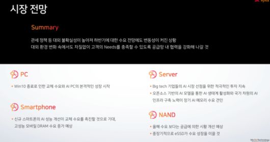 2분기 및 하반기 상황은 지금과 다르지 않다. 미국과 중국의 관세 전쟁 미국의 중국 반도체 규제 등 글로벌 불확실성은 그대로다. 그럼에도 불구 삼성전자와 SK하이닉스가 같은 상황은 아니다. SK하이닉스 올해 HBM 결과는 이미 나왔다. 삼성전자는 만들어야 한다.