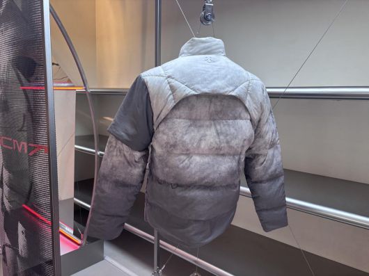 전시된 제품 중에는 아크먼트의 또 다른 제품군인 ‘제로그래비티 다운’과 ‘사일런스 블락 시리즈’도 포함됐다. ‘제로그래비티 다운’은 초경량 투습 방수 원단인 퍼텍스(PERTEX)와 미국 육군 개발 인공 충전재인 프리마로프트(PRIMALOFT)를 결합했다고 한다. ‘사일런스 블락’은 옷감 마찰음을 줄이는 ‘노이즈리스’ 콘셉트로 신축성과 경량성이 강조됐다.