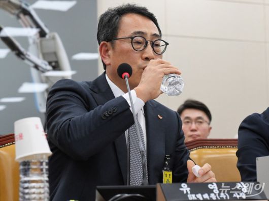 유영상 SK텔레콤 대표이사가 30일 국회 과학기술정보방송통신위원회의에서 열린 방송통신 분야 청문회에서 유심 해킹 사태에 대한 질의를 받던중 물을 마시고 있다. 사진=이수길 기자 Leo2004@newsway.co.kr |