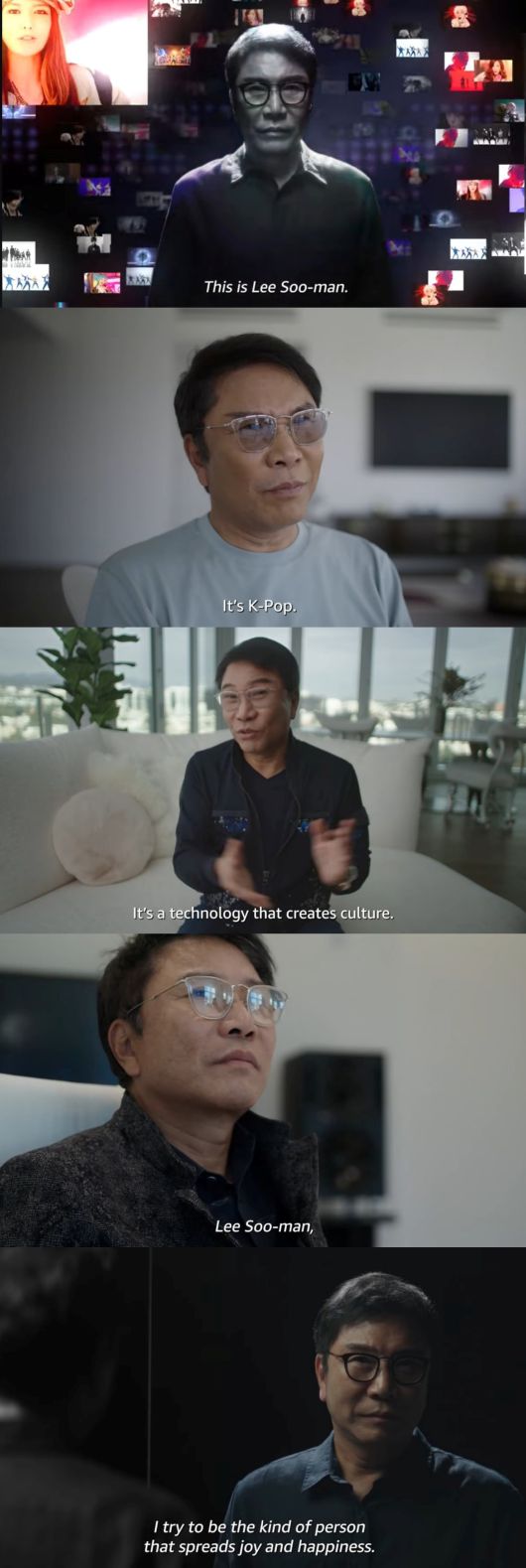 동방신기부터 엑소, NCT, 에스파 등 그동안 이수만이 프로듀싱을 담당했던 그룹들의 소개에 이어 이수만은 "스타들이 나오는 그런 시스템을 만드는 것이 문화를 만드는 기술"이라고 말했다.
