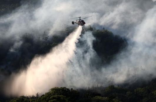 대구 북구 함지산 산불이 재발화한 30일 오후 산불 현장에서 헬기가 진화 작업을 하고 있다. 대구=뉴시스 |