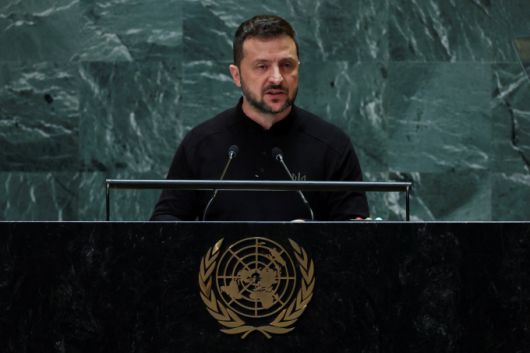 유엔 총회에서 연설하는 볼로디미르 젤렌스키 우크라이나 대통령. [사진=로이터 뉴스핌] |