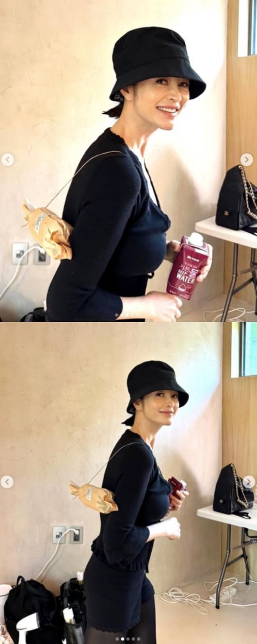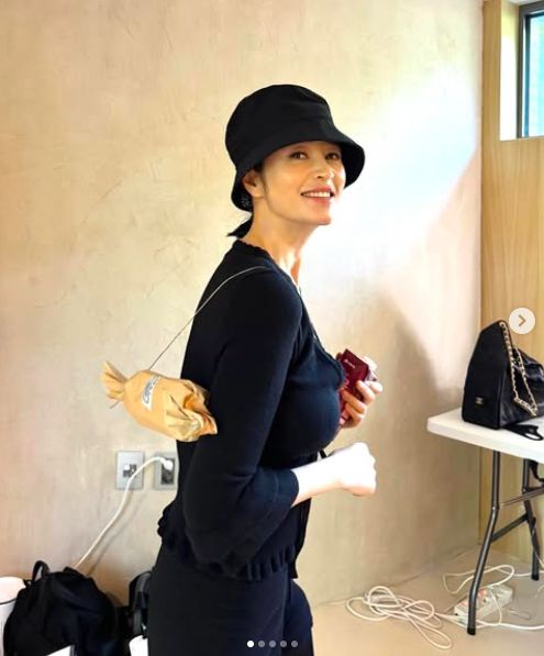 사진 속 김혜수는 올 블랙룩을 선보인 채 포즈를 취하고 있는 모습이 담겼다. 샌드위치 포장지로 보이는 것을 가방으로 멘 그는 벙거지 모자에 니트 카디건만 입고 있지만 남다른 아우라를 풍기고 있다.