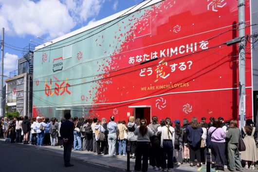 지난 29일 일본 도쿄 시부야구 캣스트리트에 위치한 ‘크레인즈 6142’에서 열린 대상의 ‘김치 블라스트 도쿄 2025’ 첫날 행사장 앞에 방문객들이 길게 줄을 서고 있다. 이날 하루 동안 1800여명이 다녀갔다. 대상의 ‘종가’ 브랜드 앰버서더이자 세븐틴 멤버 호시가 콘텐츠를 소개하는 도슨트 영상을 곳곳에 배치했다.