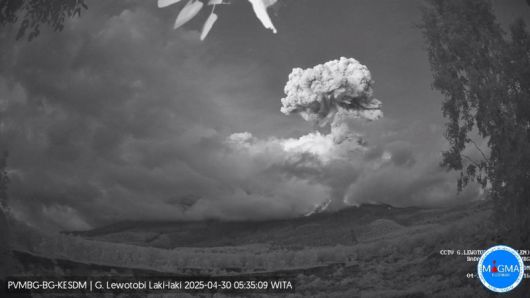 30일 인도네시아 에너지광물자원부(ESDM) 산하 화산·지질재난방지센터(PVMBG)의 보고 등에 따르면 르워토비 라키라키 화산이 이날 오전 5시22분 분화했다. 이번 분화로 화산재 기둥은 분화구로부터 약 4000m, 해발 약 5584m 상공까지 치솟았으며 강한 뻥 소리도 동반됐다.